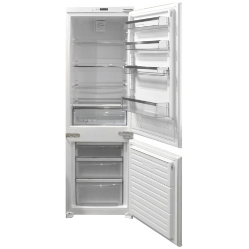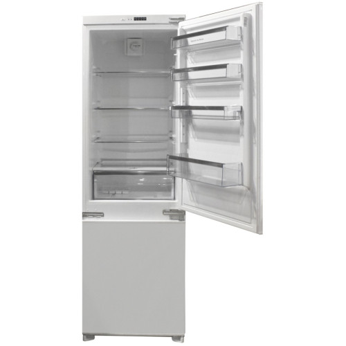 Встраиваемый холодильник Зигмунд Штайн BR 08.1781 SX может быть установлен в типовую мебель для кухни. Простое электронное управление с дисплеем, отличная эргономика делают пользование прибором простым и удобным. Класс энергопотребления холодильника Zigmund Shtain BR 08.1781 SX - А++, что соответствует самым высоким нормам энергосбережения и это отразится на Вашем кошельке в лучшую сторону. Низкий уровень шума делает пользование прибором еще более комфортным. При необходимости, можно изменить сторону открывания дверей. Холодильник оснащен системой Frost Free - теперь Вам не нужно будет размораживать свой холодильник, за вас это сделает Frost Free. Габариты (ШхГхВ): 54х54.5х177 см. Общий объём: 243 л. Объём холодильной камеры нетто: 180 л. Объём морозильной камеры нетто: 63 л. Потребление энергии: 0,619 кВт в сутки, 226 кВт/год Мощность замораживания: 3 кг/сутки. Мощность: 124 Вт. Сила тока: 0,55 А. Охладитель: R600a (33 гр). Уровень шума: 42 дБ. Автономия: 720 мин. Климатический класс: BGT/N. компрессор один. Режим суперзаморозки. Зона для овощей с регулятором влажности. Акустическая сигнализация открытой дверцы. Диодное освещение холодильной камеры, 4 полки из закалённого стекла в холодильной камере, 1 полка для бутылок, 3 полки в дверце холодильной камеры, 3 ящика в морозильной камере (из них 2 выдвижных). Расположение морозильной камеры снизу. Размораживание холодильной камеры: автоматическое. Лоток для льда. Тип навески фасада: скользящий. Страна производства Турция.