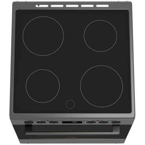 материал рабочей поверхности стеклокерамика, тип духовки электрическая, объем духовки 60 л, максимальная температура в духовке 250 °C, конвекция, гриль электрический, управление механическое, очистка духовки традиционная, доп. функции таймер, термостат, особенности конструкции часы, ящик для посуды, подсветка духовки, дисплей, ШхВхГ 60х85х60 см