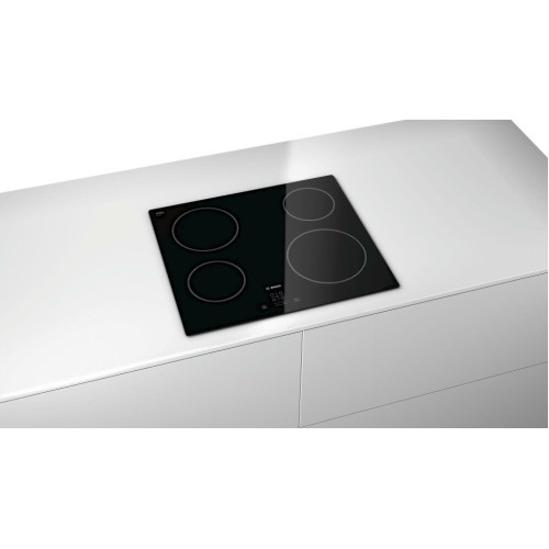 Электрическая варочная панель cо стеклокерамической поверхностью и независимым управлением оборудована четырьмя конфорками Hi-Light. Управление осуществляется с помощью сенсорной панели, а блокировку элементов управления удобно использовать при мытье варочной панели. Индикация остаточного тепла указывает остаточное тепло, которое можно использовать для доводки блюда или для его поддержания в тёплом состоянии, а также позволяет оптимизировать потребление электроэнергии.