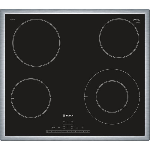 Варочная панель Bosch PKF645FP1 — удобная модель с интуитивно понятным управлением DirectSelect. Простота выбора мощности нагрева для любой зоны и дополнительных функций. Режим PowerBoost позволяет переключить мощность на одну конфорку для быстрого нагрева большого объема жидкости, позволяет экономить 20% времени приготовления. Его можно применять на передних двух конфорках, в отличие от модели PKF645FP1E, где он реализован только на правой передней. Таймер с функцией отключения питания по истечении заданного времени. Cleaning-пауза нужна для быстрой очистки поверхности, она блокирует панель на 20 секунд, сохраняя установленные настройки. Автоматическое защитное отключение срабатывает, если конфорка работает в течение длительного времени без изменения настроек. Ключевые преимущества: * Сенсорное управление DirectSelect * Таймер с функцией отключения * Режим PowerBoost