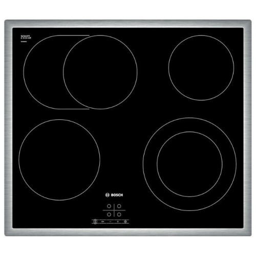 Встраиваемая электрическая панель Bosch PKN645D17 оснащается двумя конфорками с возможностью расширения зоны нагрева - круглой и овальной. Они идеально подходят для приготовления блюд в крупных кастрюлях, утятницах и других видах посуды. Рабочая поверхность плиты изготовлена из стеклокерамики. Этот материал легко очищается от загрязнений и имеет высокую прочность. Он выдерживает большие нагрузки - в том числе возникающие при падении больших предметов. Сенсорная панель, расположенная в передней части устройства, даёт пользователю возможность установить требуемые параметры за считанные секунды. Таймер отключения конфорок позволяет отвлекаться от процесса готовки, не беспокоясь о пригорании продуктов. Индикатор остаточного нагрева предупреждает человека об опасности получения ожогов при касании рабочей поверхности устройства. Функция блокирования панели делает удобной очистку варочной панели и не допускает её случайного включения.
