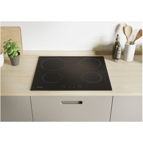 Встраиваемая электрическая панель Candy CH 64 CCB – готовить с ней одно удовольствие! Особенности Наличие 4 конфорок позволит вам без труда готовить любые блюда для всей семьи или гостей. Двухконтурная конфорка обеспечивает более быстрый и эффективный нагрев. Рабочая поверхность, на которой расположены конфорки, изготовлена из стеклокерамики, поэтому за ней так просто ухаживать. Благодаря красивому дизайну эта электрическая панель идеально впишется в ваш интерьер. Безопасность Для безопасной работы электрической панели предусмотрено защитное отключение. Также имеется блокировка панели управления, которая прекрасно защищает от любопытных детских рук. Управление Панель управления расположена спереди, что обеспечивает легкий доступ к необходимым настройкам. Удобные сенсорные переключатели позволят вам с легкостью пользоваться этой электрической панелью. Индикатор остаточного тепла Индикатор остаточного тепла всегда предупредит вас о том, что поверхность еще не остыла. Как только индикатор погаснет, можно прикасаться к поверхности, не опасаясь, что можно обжечься. Таймер Функция Таймера позволит запрограммировать работу прибора на определенное время, после чего произойдет отключение.