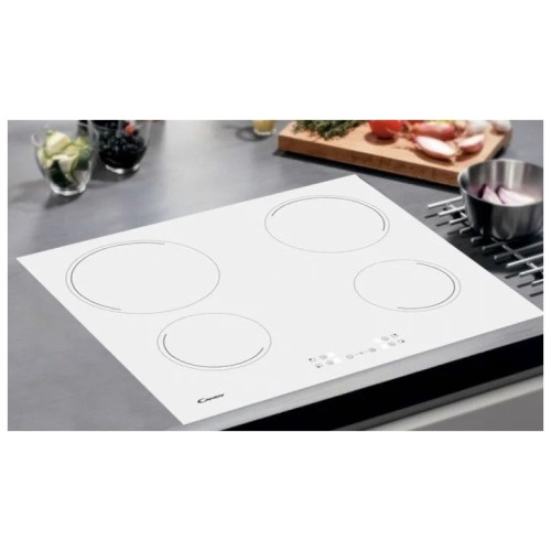 Стеклокерамическая варочная поверхность Candy CH64CCW выполнена в белом цвете и подойдет для светлого интерьера кухни. Электронный таймер позволяет установить необходимое время приготовления. Зона расширения имеет цветное обозначение, что увеличивает комфорт эксплуатации прибора.