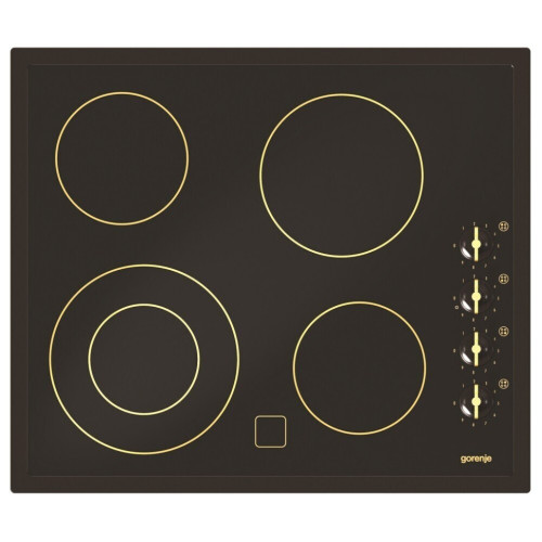 Варочная поверхность GORENJE EC630RBR – стеклокерамическая независимая панель, выполненная в черном цвете со скошенной коричневой рамкой по контуру. Такое оформление отличает ее от других моделей данной категории и позволяет удачно разместить даже в самом изысканном интерьере кухни. Температура всех 4-х конфорок регулируется поворотными переключателями, расположенными сбоку на панели. Для данной модели предусмотрено простое механическое управление, а мощность подключения составляет 6400 Вт. Варочная поверхность GORENJE EC630RBR обладает индикаторами остаточного тепла, предупреждающими о степени нагрева плиты. Благодаря данной функции обеспечивается полностью безопасное использование панели и исключается вероятность ожога.
