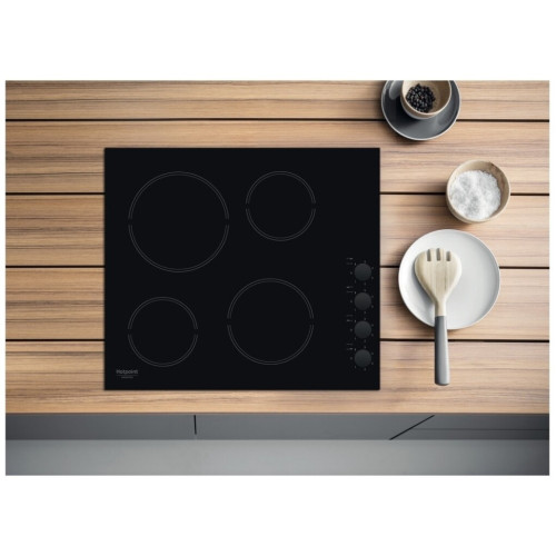 Электрическая варочная панель Hotpoint-Ariston HR 629 C; Рабочая поверхность: cтеклокерамика; Установка: независимая; Общее количество конфорок/зон нагрева: 4; Управление: механическое; Тип конфорок/зон нагрева: электрические Hi-Light