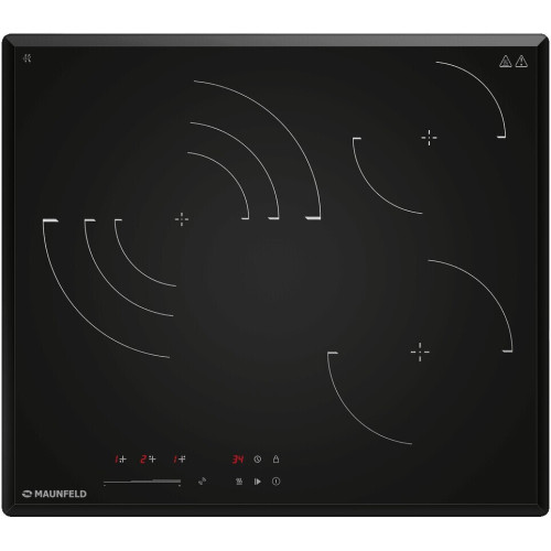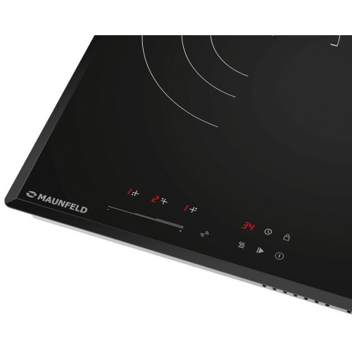 Независимая стеклокерамическая варочная панель MAUNFELD — модель черного цвета с обновленным дизайном, от приборов предыдущего поколения ее отличает новая графика и система управления. Это функциональный и очень удобный прибор. Одна из конфорок трехконтурная, площадь нагрева можно уменьшить или увеличить в зависимости от диаметра посуды. Усовершенствованная конструкция Hi-Light обеспечивает быстрый разогрев. Индикаторы остаточного тепла указывают на состояние конфорки после завершения приготовления блюда. Также остывающие зоны можно использовать для подогрева, растапливания шоколада, масла. Слайдерное управление удобно и интуитивно понятно. При выборе опции Stop&Go все включенные нагреватели отключаются на короткое время. При повторном нажатии на кнопку приготовление возобновляется на заранее выставленных параметрах. Это особенно удобно при использовании нескольких зон. Блокировка от детей обеспечивает безопасную эксплуатацию устройства. Данная функция управления позволяет зафиксировать выбранные настройки до окончания рабочего цикла. Сенсорное управление с красной индикацией, расположенное на фронтальной поверхности, дает возможность: * выбрать уровень мощности для каждой конфорки (от 0 до 9) * выставить таймер (от 1 до 99 минут) для отключения одной или нескольких варочных зон по истечении заданного времени. * заблокировать панель от детей * активировать функцию «Пауза» * использовать зону расширения Предусмотрены следующие функции, упрощающие эксплуатацию плиты: * Индикатор остаточного тепла, который укажет, какая из варочных зон ещё горячая. * Автоматическое отключение. * Защита от перегрева. Стеклокерамическая варочная панель не требует подбора специальной посуды. Вы можете использовать посуду любого типа.