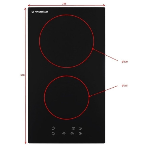 Стеклокерамическая варочная поверхность - современные технологии позволяют сделать процесс приготовления быстрым и безопасным. Высокие стандарты качества позволяют добиться долголетней, безотказной работы продукции MAUNFELD, а также качественного и безопасного приготовления пищи на наших варочных поверхностях.Преимущественные особенности варочной панели:Индикация ступени нагрева (от 0 до 9), таймер приготовления, таймер минутный, индикатор остаточного тепла, замок от детей, блокировка всех элементов в случае мокрой поверхности, автоматическое отключение. Система защиты и безопасности Таймер Hi-Light конфорки Изготовлено по европейскому сертификату CE В производстве варочных поверхностей используются высококачественные комплектующие производства ТайландУправлениеФронтальное управление происходит с помощью сенсора.Материал исполненияСтеклокерамическая панель выполнена из высококачественного, термостойкого стекла, окрашенного по всей массе.Мощность конфорок2 конфорки Hi-Light мощностью: 1800, 1200 ВтШирина300 ммРазмеры для встраивания268*500 мм (Ш*Г)