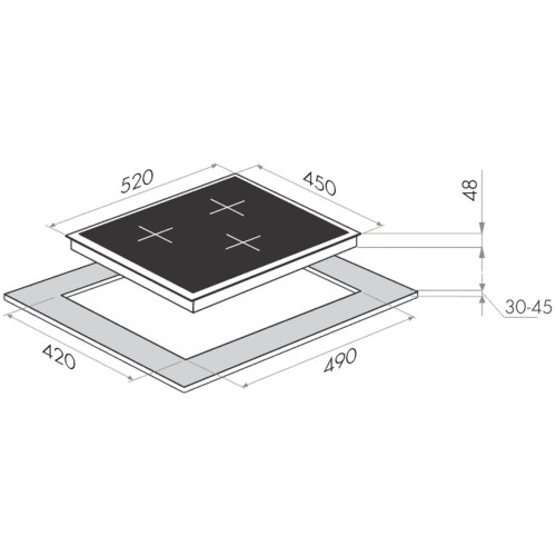Безопасность защитное отключение конфорок, индикатор остаточного тепла, кнопка блокировки панели