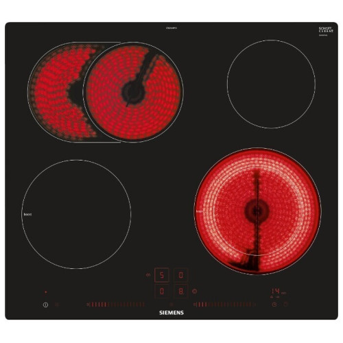 Общие данные: Габариты: 5,1х57,2х51,2 см Габариты ниши для встраивания: 5,1х56х50 см Рабочий стол: стеклокерамика Количество конфорок: 4 быстрого нагрева Hi Light Мощность 1 конфорки (кВт) : 2 Мощность 2 конфорки (кВт) : 1.8 ; 2.6 Мощность 3 конфорки (кВт) : 1.2 Мощность 4 конфорки (кВт) : 1.2 ; 2.1 Зоны расширения: радиальная и овальная Индикатор остаточного тепла для каждой конфорки Управление и функции: Сенсорное управление dual LightSlider Дисплей индикации уровня мощности для каждой конфорки Таймер с отключением Таймер без отключения (со звуковым сигналом) Таймер прямого отсчета 17 ступеней мощности Функция поддержания тепла для всех зон нагрева Cleaning-пауза: кратковременная блокировка панели до 30 секунд Функция reStart Дисплей индикации энергопотребления Функция PowerBoost Безопасность: Главный выключатель Двухпозицонные индикаторы остаточного тепла Блокировка от детей Защитное отключение Дополнительная информация: Варочная панель без металлической рамы Минимальная толщина столешницы 30 мм