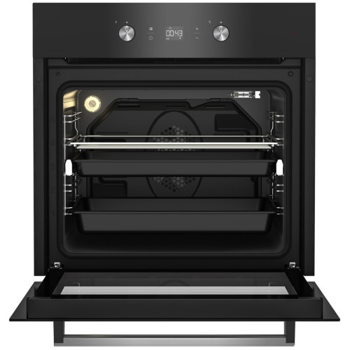 Мультифункциональный духовой шкаф BEKO BIM24301BCS - функциональное решение для вашей кухни. УДОБСТВО ИСПОЛЬЗОВАНИЯ Выбирать функции, включать и выключать духовой шкаф максимально удобно с помощью сенсорного управления, LED дисплея и утапливаемых переключателей. А галогеновая подсветка и телескопические направляющие, с помощью которых можно полностью выдвинуть противень даже одной рукой, сделают процесс приготовления блюд еще комфортнее. ФУНКЦИОНАЛЬНОСТЬ ДЛЯ ВИРТУОЗНЫХ РЕЦЕПТОВ Духовой шкаф поддерживает 8 различных режимов. В их числе специальная функция 3D-приготовления, при котором можно одновременно готовить несколько блюд, а также режимы гриля, медленного приготовления и разморозка. Также духовой шкаф поддерживает функцию конвекции, при которой за счет циркуляции воздуха формируется одинаковая температура нагрева со всех сторон. БЕЗОПАСНОЕ ИСПОЛЬЗОВАНИЕ Дополнительную безопасность для вас и ваших близких обеспечит конструкция дверцы, в которой встроено 3 стекла. Внешнее всегда будет оставаться слегка теплым, поэтому никто из ваших домочадцев случайно не обожжется, дотронувшись до духового шкафа. Кроме того, в нем присутствует блокировка от случайного нажатия и функция принудительного охлаждения. Специальный вентилятор в конструкции шкафа не дает ему перегреться, а также препятствует нагреву мебели. СТИЛЬНЫЙ ДИЗАЙН Духовой шкаф в черном цвете будет органично смотреться на кухне, выполненной в стиле хайтек, минимализм или лофт. Кроме того, фасад вашего духового шкафа не будет таким марким, как у традиционных светлых моделей, что сэкономит вам время уборки на кухне.
