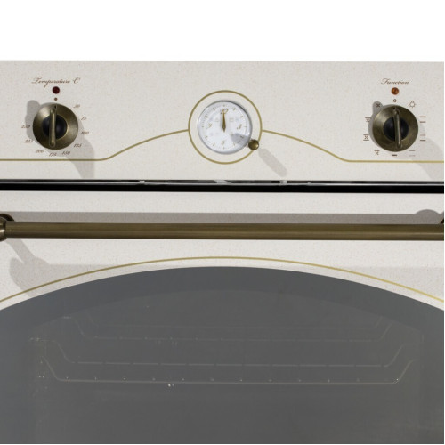 Описание Электрический духовой шкаф представлен в стиле «ретро» в цвете «слоновая кость». Аналоговые часы с таймером и фурнитура цвета «бронза» подчеркивают эстетичный внешний вид модели и повышают комфорт использования. Внутренняя поверхность духовки выполнена из эмали легкой очистки. Система охлаждения защищает от перегрева, а функция блокировки от детей исключает вероятность случайного изменения настроек, что гарантирует безопасность эксплуатации. Ключевые преимущества: Стильный дизайн Аналоговые часы Эмаль легкой очистки Защита от перегрева