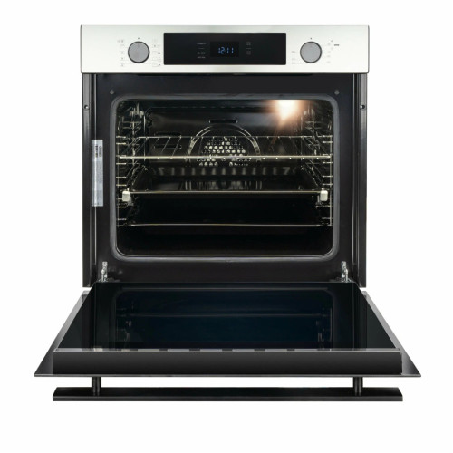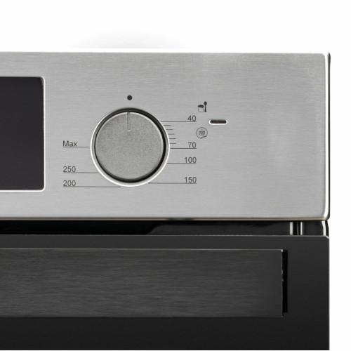 Описание Электрический независимый духовой шкаф, Класс А, Объем 72 л, 11 режимов, Конвекция, Гриль, PIZZA, Цифровой программатор с сенсорным интерфейсом с автоотключением, Специальные режимы t° (Yogurt, Sous-vide), Утапливаемые переключатели, Материал панели управления - закаленное стекло, Съемная дверца с двойным стеклом (Внутреннее стекло LOW-E (Энергосберегающее стекло) съёмное стекло легкой очистки), Подсветка, Легкоочищающаяся эмаль черного цвета, Паровая очистка, 5-уровневые Хромированные направляющие для противней, 1 уровень телескопических направляющих, Комплектация: глубокий противень с антипригарным покрытием, стандартный противень, хромированная решётка, Цвет: нержавеющая сталь/ручки цвета черный; (ВхШхГ), мм: 595х595х565.
