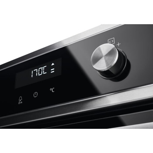 Электрический духовой шкаф Electrolux воплощает стильный внешний вид корпуса из нержавеющей стали и стекла, а также технологичность и функциональность. Всего имеется 9 автоматических программ, среди которых – гриль, конвекция, быстрый нагрев, разморозка. Технология Even Cooking равномерно распределяет тепло для достижения лучших результатов приготовления. Встроенный вентилятор, который включается автоматически, предотвращает перегрев. Система пиролитической очистки за счет превращения жира в пепел гарантирует легкость в уходе. Интуитивная панель с информативным цифровым дисплеем, поворотные переключатели и галогеновая подсветка обеспечивают удобство в эксплуатации встраиваемого духового шкафа Electrolux. В комплекте предусмотрены 1 противень и решетка.