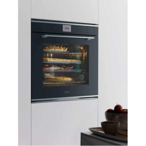 Описание Готовьте свои лучшие блюда и пробуйте новые рецепты с духовым шкафом Franke FMY 99 HS XS! Стандартные размеры и большой объем внутренней камеры — выбор тех, кто много готовит для семьи или частых праздничных встреч с друзьями. Желательно заранее продумать расположение такой модели в кухонном гарнитуре. Количество режимов работы в духовом шкафу Франке: 18. В число доступных программ входят: классический нагрев, конвекция, гриль для создания хрустящей корочки, и другие. Помимо основных программ воспользуйтесь специальными возможностями этого прибора: размораживанием продуктов, чтобы сократить время на подготовку; и другими. Тип гриля в этой модели — электрический. Особенности камеры: объем — 73 л, внутреннее покрытие — серая эмаль, освещение — 1 галогенная лампа, очистка — очистка Aquaclean. Благодаря этим свойствам готовить еще приятнее! Особенности дизайна и внешней панели управления — также важный пункт при выборе духовки на кухню. В данной модели нужно обратить внимание на цвет — черное стекло / нержавеющая сталь, охлаждение двери, чтобы поверхность и мебель вокруг не нагревались. Электронная панель управления позволяет быстро разобраться в настройке программ и не требует чрезмерных усилий. Для защиты вас от высоких температур, случайной смены настроек и непредвиденных ситуаций производители разработали несколько опций. Удивляйте своих близких необычными блюдами и готовьте с удовольствием!
