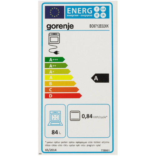 БрендGORENJEТип духовкиэлектрическаяМодельBO6712E02XKPartNumber/Артикул ПроизводителяBO6712E02XKТип управлениянезависимоеПереключателиповоротныеМощность подключения2500Класс энергоэффективностиAОбъем духовки84Максимальная температура300Внутреннее покрытие духовкипиролитическая эмаль SilverMatteОчистка духовкиочистка паром AquaCleanГрильДАТип гриляэлектрическийМногофункциональная духовкаДАКоличество программ духовки7Режимы духовкиКлассический нагрев (снизу + сверху), Нагрев снизу, Пицца, Большой гриль, Медленное приготовление GentleBake, Очистка паром AquaClean, Освещение духовкиОткрывание дверцывнизКоличество стекол в дверце2Освещение духовкиДАТип освещениягалогенноеКоличество ламп подсветки1Мощность ламп подсветки25Защита от отпечатков пальцевДАЦветнержавеющая стальДополнительный цветчерныйШирина духовки59.5Глубина духовки56.4Высота духовки59.5Размеры59.5x56.4x59.5смШирина ниши для встраивания56Глубина ниши для встраивания55Высота ниши для встраивания59Размеры для встраивания56x55x59смВес29Ссылка на сайт поставщика/вендораhttps://ru. gorenje. com/products/cooking-and-baking/ovens/OVEN-BO3CO1N02-1-BO6712E02XK-GOR/p/000000000000738001Вес упаковки (ед)31Утапливаемые переключателиДАДлина упаковки (ед)0.68Ширина упаковки (ед)0.61Габариты упаковки (ед) ДхШхВ0.68x0.61x0.66Высота упаковки (ед)0.66Объем упаковки (ед)0.273768ОсобенностиСъемные направляющие