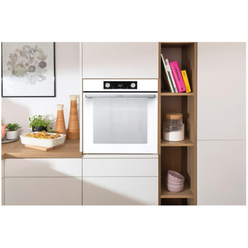 Название Электрический духовой шкаф Gorenje BOS6737E06WG. Категория Встраиваемые духовые шкафы. Конвекция да. Гриль да. Тип духовки электрическая. тип духовкиэлектрическая, установканезависимая, ширина59.50 см, конвекция, гриль, тип гриляэлектрический, очистка духовкигидролизная, объем духовки77 л, количество стекол дверцы духовкидва, класс энергопотребленияA, особенности конструкцииподсветка камеры, телескопические направляющие, дисплей, дополнительные функциидобавление пара, размораживание, быстрый нагрев, таймер, высота59.50 см, максимальная температура300 градусовC, безопасностьсистема защиты от детей. Линейка Essential. Установка независимая. Объем духовки 77 л. Класс энергопотребления A. Мощность подключения 3.5 кВт. Размеры (ВхШхГ) 59.5 х 59.5 x 56.4 см. Максимальная температура 300 градусовC. Режимы нагрева верхний нагрев, верхний нагрев + нижний нагрев, гриль + конвекция, большой гриль, конвекция. Функция СВЧ нет. Тип гриля электрический. Управление со смартфона нет. Особенности конструкции подсветка камеры, телескопические направляющие, дисплей. Дополнительные функции добавление пара, размораживание, быстрый нагрев, таймер. Электроподжиг нет. Газ-контроль нет. Дверца духовки откидная. Очистка духовки гидролизная. Число стекол дверцы духовки два. Безопасность система защиты от детей. Дополнительная информация противни - 2 шт (глубокий эмалированный противень, мелкий эмалированный противень), решетка - 1 шт; плавное открывание и закрывание дверцы.