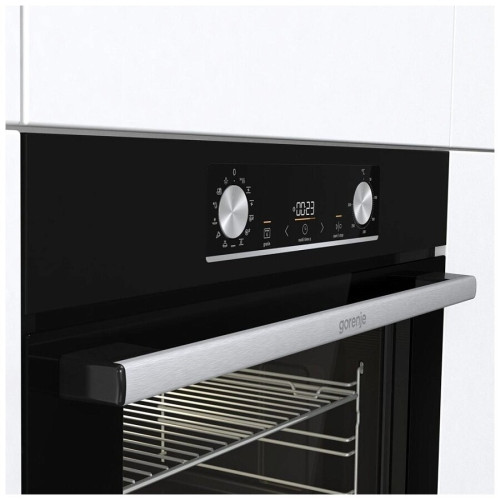 Духовой шкаф Gorenje BOSX6737E03B это прибор выполненный в инновационной конструкции BigSpace, благодаря которой духовка стала больше и шире, что позволяет готовить блюда внушительных размеров. Программа ExtraSteam с использованием пара очень хорошо подходит для выпечки. Вы просто наливаете воды в противень и в процессе готовки получается пышный мякиш и хрустящая корочка. Функция быстрого нагрева разогревает духовку до 200°C всего за пять минут, что экономит 30% времени по сравнению с обычным нагревом. О том что необходимая температура достигнута, вам сообщит звуковой сигнал.