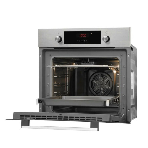 Описание Цифровой таймер Сенсорный цифровой таймер работает в двух режимах. Он контролирует общее время приготовления и задает время выключения духового шкафа. В режиме отложенного старта духовой шкаф может включиться и выключиться без вашего участия достаточно лишь установить время окончания и общее время приготовления. Эта функция особенно полезна в праздничные дни, когда нужно успеть сделать большое количество дел. 8 режимов духового шкафа Режимы: гриль; верхний и нижний нагревательный элемент + конвекция; верхний нагревательный элемент + гриль; размораживание; нижний нагревательный элемент; быстрый нагрев; верхний нагревательный элемент + нижний нагревательный элемент. Конвекция Функция конвекции обеспечивает улучшенное распределение жара и постоянную циркуляцию воздуха внутри духового шкафа. Это сокращает время приготовления, а также позволяет добиться более равномерного пропекания и золотистой корочки. Кроме того, с использованием конвекции вы можете готовить сразу на нескольких уровнях одновременно. Быстрый предварительный нагрев Благодаря данному режиму, духовой шкаф нагревается до температуры 150°C всего за 4 минуты. Теперь вы можете сосредоточиться на приготовлении пищи вместо того, чтобы ждать, когда духовой шкаф нагреется до нужной температуры. Очистка паром Aqualytic Благодаря сверхгладкой структуре эмалированного покрытия уход за духовкой осуществляется быстро, просто и эффективно. Достаточно налить 0,5 воды на противень, установить температуру 100°C и время 30 минут. После того, как пар пропитает и размягчит загрязнения на стенках духового шкафа, их нужно протереть влажной тряпкой или губкой, и поверхность станет блестящей и чистой. Съемное стекло дверцы Часто при необходимости почистить духовой шкаф мы сталкиваемся с банальной проблемой: это очень неудобно. Конструкция дверцы духового шкафа Hansa позволит вам без особых усилий снять стекла дверцы и помыть их в раковине или в посудомоечной машине. Противень ProCook В любом духовом шкафу Hansa вы сможете найти от одного до трех противней уникальной сотовой формы. Эта форма обеспечивает постоянную циркуляцию воздуха под продуктом и не позволяет пригорать ему так же быстро, как это было бы на абсолютно ровном противне. Более того, эта же форма создает ребра жесткости, которые предотвращают деформацию противня со временем. Выдвижные телескопические направляющие Если противень тяжелый и горячий, то доставая его из духовки вы рискуете уронить его или обжечься. Однако, с телескопическими направляющими в духовке Hansa этого не случится. Они поддерживают противень и все, что вам надо сделать — это выдвинуть его, легко потянув на себя. Кроме того, вы можете сами выбрать уровень, на котором вам нужны направляющие, и легко перевесить их.