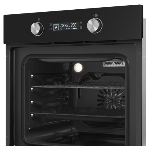 Электрический встраиваемый духовой шкаф с фронтальной панелью из высококачественного жаропрочного стекла. Дизайн модели дополнен утапливаемыми регуляторами PUSH PULL увеличенного диаметра. Поворотные ручки PUSH PULL в сочетании с современным сенсорным управлением обеспечивают комфортное и наиболее точную регулировку параметров приготовления. Большой цифровой дисплей духового шкафа отображает всю необходимую информацию. Класс энергопотребления А - это гарантия эффективности устройства при минимальном расходе электроэнергии. Вы можете больше не думать о счетах за электроэнергию, а только наслаждаться приготовлением вкуснейших блюд в нашем духовом шкафу. Шесть режимов духового шкафа ещё раз подчёркивают высокую функциональность данной модели. Вы можете выбрать наиболее оптимальный режим для приготовления любого блюда, а также экспериментировать, меняя режимы. Большой объём 60 л. При таком объёме вы можете готовить одновременно несколько блюд, разместив решетку или противень на одном из 5 уровней боковых направляющих. Установите таймер на время, необходимое для приготовления блюда и занимайтесь своими делами. В нужное время таймер оповестит вас о готовности. Благодаря конвекции вы можете установить противень на любом уровне и получить равномерное пропекание, хрустящую корочку. Тепло распределяется по всему объёму духового шкафа, обеспечивая равномерное приготовление блюд.