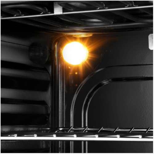 Духовой шкаф оснащен разнообразным набором функций для приготовления: 1. Подсветка духовки. Яркое внутреннее освещение делает процесс приготовления блюд ещё приятнее. Вы всегда сможете видеть состояние готовящихся блюд, контролировать их готовность, даже не открывая шкафа. 2. Традиционный нагрев. Для выпекания и жарки на одном уровне. Работают верхний и нижний нагревательные элементы. 3. Малый гриль. Этот метод приготовления пищи позволяет использовать только внутреннюю часть верхнего элемента нагрева, который направляет тепло вниз на еду. Эта функция подходит для приготовления на гриле маленьких кусочков бекона, мяса, тостов и т. д. 4. Нижний нагрев. Используется для блюд, требующих длительного и медленного пропекания, например, для приготовления блюд в горшочках. 5. Полный гриль. Этот метод приготовления пищи использует внутреннюю и внешнюю части верхнего нагревательного элемента, который направляет тепло вниз на еду. Эта функция подходит для гриля средних или больших частей сосисок, бекона, стейка, рыба и т. д. 6. Эко. Энергосберегающий режим приготовления. Тепло равномерно распределяется от верхнего и нижнего нагревательного элемента. Преимущества: • Охлаждение: тангенциальное • Тройное стекло дверцы • Духовой шкаф оснащен тяжелыми цельнометаллическими ручками управления.Объём 59 л. При таком объёме вы можете готовить одновременно несколько блюд, разместив решетку или противень на одном из 5 уровней боковых направляющих. Энергопотребление. Духовой шкаф имеет класс энергопотребления А, что говорит, о низком потреблении электроэнергии. Подсветка рабочей зоны. Модель оснащена ярким освещением камеры, что позволяет в деталях рассмотреть приготовление пищи. Черная эмаль легкой очистки. Внутреннее покрытие камеры выполнено из специальной эмали, обладающей особенными свойствами к расщеплению осевшего на стенки жира, что позволяет легко очищать ее поверхность. Холодный фронт. Специальная функция при которой внешнее стекло не нагревается в процессе работы, что делает приготовление безопасным, особенно при нахождении на кухне маленьких детей.В комплекте: стандартный противень и хромированная решетка.