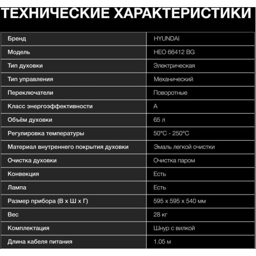 Электрический духовой шкаф Hyundai HEO 66412 BG черный