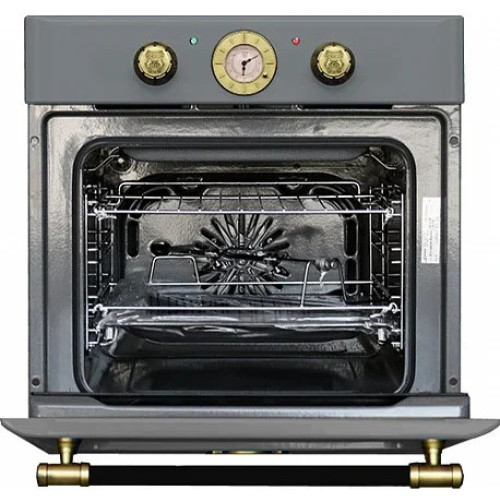 Описание Электрический духовой шкаф Kaiser EH 6424 GrBe встраиваемого типа представлен в сером цвете. Модель относится к коллекции Belle Epoque. Интересный внешний вид под старину прекрасно впишется в кухню, выполненную в классическом стиле. Класс энергоэффективности A свидетельствует о небольших затратах на свет. Электронное управление Logic control осуществляется с помощью поворотных переключателей. Аналоговый таймер просигнализирует о моменте готовности блюда. Полезный объем составляет 68 л, этого вполне достаточно для семьи из четырех человек. Фронтальная поверхность выполнена из эмали, для ухода за которой достаточно влажной тряпки и слабого раствора моющего средства. К современным методам уборки внутреннего пространства относится каталитическая очистка, которая быстро и качественно удаляет даже сильный нагар. Дверца духовки имеет двойное остекление, препятствующее потерям тепла и минимизирующее вероятность получения ожога при случайном касании. В стандартную комплектацию входят два вида эмалированных противня различной глубины, хромированная решетка телескопические направляющие и вертел. Благодаря электрическому грилю можно приготовить овощи, мясо и рыбу с аппетитной корочкой снаружи и сочные внутри и минимальными затратами по времени. Конвекция дает не только пышную выпечку, но и способствует равномерному распределению жара. Функция разморозки настроена таким образом, чтобы не испортить вкусовые качества исходных продуктов и сохранить их полезные свойства. За безопасную эксплуатацию отвечает тангенциальное охлаждение, которое препятствует перегреву духовки и тем самым продлевает срок ее службы. Ключевые преимущества: Класс энергоэффективности A Электрический гриль Опция размораживание