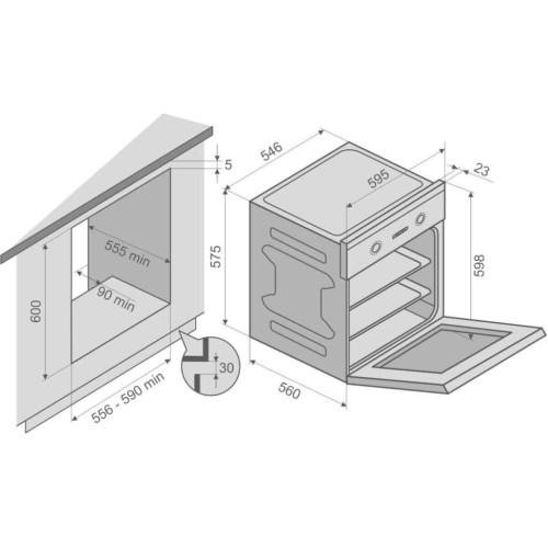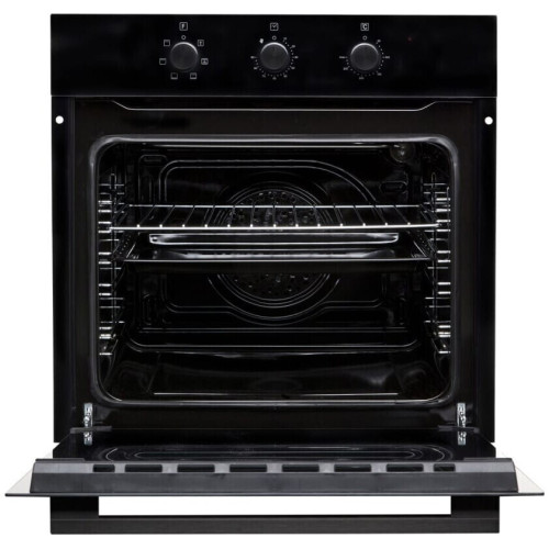 Электрический встраиваемый духовой шкаф с конвекцией предназначен для приготовления различных блюд. Особенности модели: * 6 функций (гриль + турбо вентилятор + вентилятор охлаждения) + освещение * Материал панели управления: стекло * Управление: механическое, утапливаемые поворотные переключатели * Механический таймер * Фурнитура: утапливаемые поворотные переключатели (Soft Touch пластик черного цвета) * Алюминиевая ручка дверцы тонированная в черный цвет * Направляющие: съемные хромированные боковые направляющие (5 уровней) * Камера: внутренняя полость черная эмаль легкой очистки * Три термостойких стекла дверцы духовки