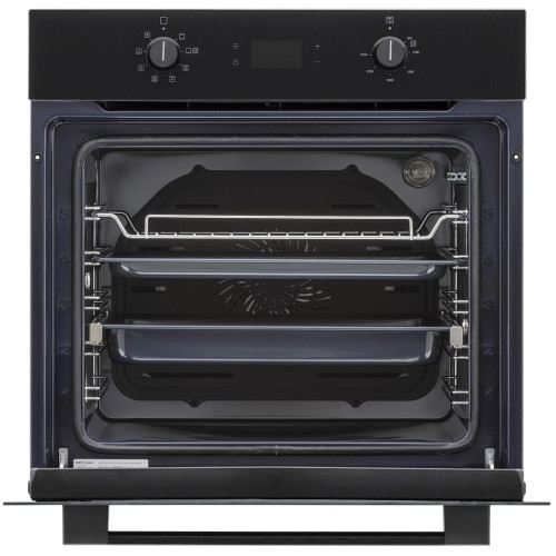 Электрический духовой шкаф NERO шириной встраивания 60 см выполнен из черного закаленного стекла с черной фурнитурой, что отлично подойдет для кухонь в стиле минимализм. Полезный объем духовки составляет 66 л, благодаря чему можно готовить несколько блюд на разных уровнях одновременно. Модель оснащена 8 режимами работы, включая 3D-конвекцию, предварительный разогрев и электрический гриль. Разнообразие программ и широкий диапазон температур нагрева 50-310°С позволяют воплотить самые смелые кулинарные идеи. Для вашего удобства модель предусматривает телескопические направляющие на 1-ом уровне, сенсорный дисплей с электронным таймером и часами, а также неприхотливые в уходе утапливаемые регуляторы. Духовой шкаф NERO оборудован функцией очистки паром Aqua Clean и каталитическими панелями на задней и боковых стенках, что делает очистку камеры от жира и нагара намного проще и быстрей. В базовую комплектацию модели входят стандартный и глубокий противни, решетка для гриля, а также монтажные элементы.