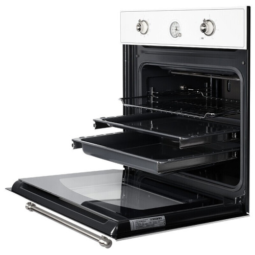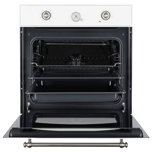 Подбирать кухню в стиле Прованс стало легче.Духовой шкаф Kuppersberg SR 609 W Silver выполнен в неповторимо стильном ретро дизайне. Его полностью стеклянный фасад, изготовленный из высокопрочного стекла, придаст вашей кухне особую неповторимость, а так же позволит Вам воплотить в жизнь свои самые необычные кулинарные шедевры. Выбирайте оптимальные рецепты и необходимые режимы для румяной корочки, бережного выпекания, жарки на нескольких уровнях, размораживания или подогрева. Конвекция обеспечит равномерное приготовление любого блюда на выбранном Вами уровне. Модель имеет 9 рабочих режимов готовки, благодаря чему вы можете готовить самые разнообразные блюда любых масштабов. Духовой шкаф оснащен поворотными переключателями и встроенным таймером с функцией автоматического отключения духовки. В комплектацию входят: стандартный противень, глубокий противень и решетка для гриля.
