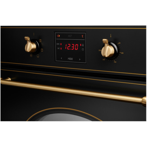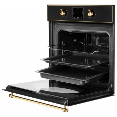 Не знаете, каким прибором дополнить элегантную классическую кухню? Оптимальным вариантом станет приобретение электрического духового шкафа SR 615 B Bronze чёрного оттенка с бронзовой фурнитурой. Эргономичный агрегат способен не только удачно вписаться в интерьер, но и выполнять множество функций: 6 автоматических программ, готовка блюд на гриле с использованием разных модификаций; разморозка полуфабрикатов; светодиодное освещение; Встраиваемый духовой шкаф SR 615 B Bronze от немецкого производителя прослужит максимально долго, благодаря высокому качеству сборки.