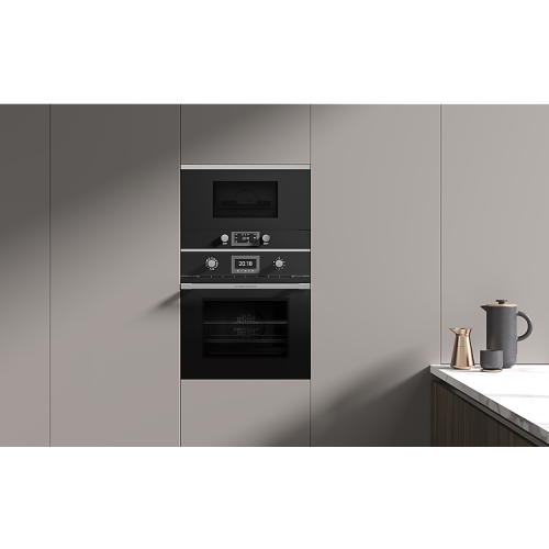 Описание 10 режима приготовления с использованием пара 8 режимов приготовления духового шкафа (без пара) Режим пара + ökotherm катализатор, комбинированное приготовление на пару, регенерация, отдельная функция 100% пара Режим sous vide для приготовления продуктов в вакуумном пакете Светодиодный дисплей Управление с помощью поворотных переключателей из высококачественного алюминия в черном цвете Электронные часы в формате ретро (продолжительность, отложенный старт и время окончания), индикаторы белого цвета Электронная регулировка температур на дисплее Дверца со стеклянной внутренней поверхностью Быстрый разогрев Объем духового шкафа: 70 литров Мах температура 270 ◦ C Дизайн дверцы выполнен в стиле Küppersbusch INDIVIDUAL