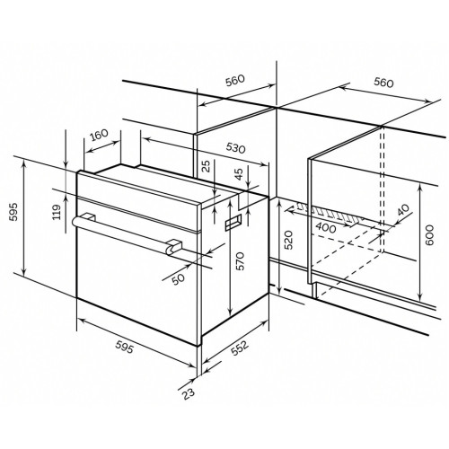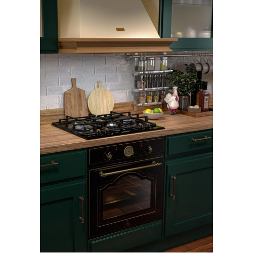 Встраиваемый электрический духовой шкаф LEX оснащен аналоговым таймером, стильными ручками под старину и двойным стеклом ретро формы. Модель с механическим управлением позволяет получить старинный вид, не жертвуя функциональностью и современными удобствами. Духовка имеет 7 режимов работы, включая традиционный, конвекцию, турбо гриль, размораживание. Технология Confit позволяет использовать томление при низкой температуре. Яркая подсветка, телескопическая направляющие, съемные дверца и стекло делают духовку LEX удобной в эксплуатации и уходе. Электрический духовой шкаф имеет внутренний объем 60 л, благодаря чему готовить можно в крупной посуде. В дверце расположено двойное стекло, которое не нагревается в процессе работы. Модель рассчитана на встраивание в кухонный гарнитур, что обусловлено специальной конструкцией корпуса. Для равномерного размораживания пищи из холодильника духовой шкаф обладает соответствующим режимом. Модель характеризуется низким потреблением электричества, что обеспечивается за счет класса энергоэффективности А.