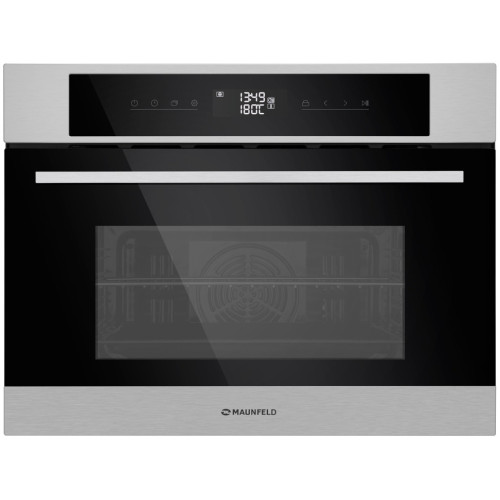Вы можете установить противень на любом из 4 уровней и получить равномерное пропекание, хрустящую корочку. Благодаря конвекции тепло распределяется по всему объёму духового шкафа, обеспечивая равномерное приготовление блюд. Сенсорная панель управления FULL TOUCH и отображение показателей датчиков на дисплее с премиальной белой подсветкой имеет современный интуитивно понятный интерфейс. 8 режимов работы ещё раз подчёркивает высокую функциональность данной модели. Вы можете выбрать наиболее оптимальный режим для приготовления любого блюда, экспериментировать, меняя режимы. Установите таймер на время, необходимое для приготовления блюда и занимайтесь своими делами. В нужное время таймер оповестит вас о готовности. Блокировка от детей заблокирует работу духового шкафы, чтобы маленькие члены семьи не начали процесс приготовления ужина без вас. Технология "Холодный фронт" представляет собой верх безопасности и защиты. Такая технология обезопасит вас от ожогов или неприятных ощущений при случайном касании, а мебель от повреждения. Яркое внутреннее освещение делает процесс приготовления блюд ещё приятнее. Вы всегда сможете видеть состояние готовящихся блюд, контролировать их готовность, даже не открывая шкафа. Эмаль лёгкой очистки позволит вам забыть о сложностях с отмыванием внутренней поверхности шкафа. Специальное покрытие из жироотталкивающей эмали позволит уделять минимальное время на уход. Духовые шкафы Maunfeld отличаются низким энергопотреблением при высокой эффективности. Это значит, что они при небольшом расходе электричества и режиме ускоренного приготовление способные создавать любимые вами кулинарные шедевры. Дизайнерские металлические полнотелые ручки имеют низкую теплопроводность, высокую прочность и стильный вид. Духовые шкафы с такой ручкой идеально впишутся в дизайн любой кухни. Мощный вентилятор, который обеспечивает непрерывную циркуляцию холодного воздуха между рабочей камерой и корпусом духового шкафа, надёжно защищает рядом стоящую мебель от нагрева и деформаций. Объем 45 литров дает уверенность в том, что несмотря на компактные размеры этого духового шкафа, вы сможете приготовить в нем сразу необходимый объем пищи, порадовав себя и своих близких изысканными блюдами. Внутренняя камера покрыта эмалью легкой очистки. Технология "Холодный фронт" представляет собой верх безопасности и защиты. Специальное энергосберегающее остекление дверцы, состоящее сразу из трёх стекол с воздушной прослойкой между ними, и наличие встроенного вентилятора для охлаждения воздуха предотвращают нагревание наружной поверхности. Такая технология обезопасит вас от ожогов или неприятных ощущений при случайном касании, а мебель от повреждения. Даже при высоких температурах внутри духового шкафа его дверцы будут едва тёплыми. Это также очень актуально, когда в доме есть дети, животные. Пользователь может активировать режимы нагрева, среди которых: конвекция - вы можете установить противень на любом уровне и получить равномерное пропекание.