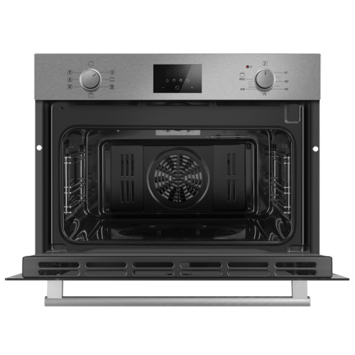 Объем 53 литра дает уверенность в том, что несмотря на компактные размеры этого духового шкафа, вы сможете приготовить в нем сразу необходимый объем пищи, порадовав себя и своих близких изысканными блюдами. Внутренняя камера покрыта эмалью легкой очистки. Дверца изготовлена по технологии "Холодный фронт". Пользователь может активировать 6 режимов нагрева, среди которых: * конвекция обеспечивает равномерное распределение тепла с помощью вентилятора.Тепло распределяется одновременно во всех направлениях, что обеспечивает равномерное пропекание блюд и хрустящую корочку, сокращая время приготовления. * размораживание - циркуляция воздуха при комнатной температуре позволяет быстрее оттаивать замороженным продуктам (без использования какого-либо тепла) * функция предварительный нагрев — для быстрого достижения нужной температуры Управление LED дисплеем и поворотными ручками PUSH PULL: простота в использовании благодаря прямому доступу к дополнительным функциям и рекомендации по температуре позволит выбрать режим работы. Фронтальная панель сделана из высококачественного жаропрочного стекла . Цельнометаллическая ручка дверцы из матированной нержавеющей стали лаконично поддерживает общий стиль и не нагревается во время готовки. Таймер приготовления - по истечении установленного времени, духовка автоматически отключится.
