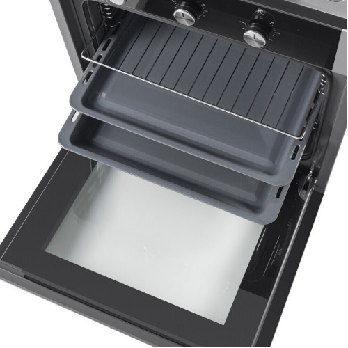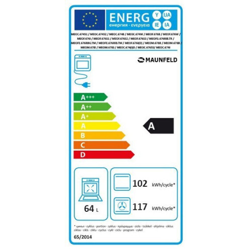 Высокие стандарты качества позволяют добиться долголетней, безотказной работы продукции MAUNFELD, а также качественного приготовления пищи в наших духовых шкафах. Духовой шкаф оснащен разнообразным набором функций для приготовления: 1. Функция верхнего нагрева 2. Функция нижнего нагрева 2. Функция верхнего и нижнего нагрева 4. Функция конвекции 5. Внутренний свет/освещение Внешнее и два внутренних стекла выполнены из немецкого жаропрочного стекла SCHOTT Энергопотребление Духовой шкаф имеет класс энергопотребления А, что говорит, о низком потреблении электроэнергии. Управление Духовка оснащена механическим управлением с помощью ручек, интуитивно понятным и удобным для простого и быстрого выбора программы. Подсветка рабочей зоны Яркое освещение камеры, позволяет в деталях рассмотреть приготовление пищи.