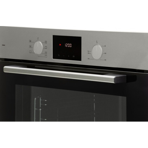 Духовой шкаф относится к стандартном типу духовок с шириной 59,5 см. Благодаря конвекции циркуляция воздуха по всей камере духовки непрерывная и равномерная. При этом не нужно беспокоиться, что блюдо подгорит или останется сырым: температура воздуха поддерживается на одном уровне во всем духовом шкафу. Объем духовки составляет 78 л. Внутреннее покрытие камеры выполнено из эмали легкой очистки Easy Clean. К другим преимуществам также относятся: * Утапливаемые переключатели. Такие элементы управления очень удобны, за ними очень легко ухаживать (на спрятанных ручках е собирается грязь), а также они великолепно смотрятся в интерьере. * Дисплей с цифровым таймером и автоотключением – забудьте о пригоревших блюдах, цифровой таймер отключит печь. * 7 режимов: среди которых разморозка и различные сочетания верхнего и нижнего нагревов и конвекции. * Двухслойное съемное стекло дверцы защитит от ожогов. Съемное стекло также удобно чистить. Технология EasyClean обеспечивает легкое снятие дверцы духовки для очистки. * Внутреннее освещение поможет управлять процессом приготовления, не доставая блюдо из духовки. * Особые высокопрочные петли обеспечивают бесшумное и плавное закрытие дверцы духовки при толчке любой силы. * В комплекте: прямоугольный противень и хромированная решетка.