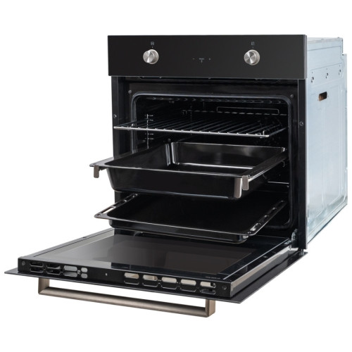 Духовой шкаф относится к стандартному типу духовок с шириной 59,5 см. Режимы духовки позволяют выбрать между разными комбинациями верхнего, нижнего нагревов, конвекции и гриля. Благодаря конвекции циркуляция воздуха по всей камере духовки непрерывная и равномерная. При этом не нужно беспокоиться, что блюдо подгорит или останется сырым: температура воздуха поддерживается на одном уровне во всем духовом шкафу. Гриль поможет добиться хрустящей корочки с сохранением сочности блюда. Режим применяется как основной или для доведения до готовности. Объем духовки составляет 69 л. Внутреннее покрытие камеры выполнено из эмали легкой очистки Easy Clean. К другим преимуществам также относятся: 9 режимов: среди которых разморозка, пицца и различные сочетания верхнего и нижнего нагревов, конвекции и гриля. Готовьте любые блюда в духовом шкафу Schaub Lorenz. Сенсорный дисплей с цифровым таймером и автоотключением – забудьте о пригоревших блюдах, цифровой таймер отключит печь. Прочные и износостойкие хромированные направляющие для противней облегчают приготовления любимых блюд. С телескопическими направляющими вытащить противень удобно и не требует больших усилий: достаточно открыть дверцу и потянуть его на себя. В этот момент движутся только направляющие. Двухслойное съемное стекло дверцы с покрытием LOW-E защитит от ожогов. Съемное стекло также удобно и легко чистить. Технология EasyClean обеспечивает легкое снятие дверцы духовки для очистки. Панель управления из закаленного стекла – стильное и современное решение для вашей кухни. Идеально сочетается с варочными панелями из стеклокерамики и закаленного стекла. Утапливаемые переключатели – при нажатии фиксируются внутри панели управления. Таким образом панель управления становится абсолютно плоской. Внутреннее освещение поможет управлять процессом приготовления, не доставая блюдо из духовки. Особые высокопрочные петли обеспечивают бесшумное и плавное закрытие дверцы духовки при толчке любой силы. В комплекте: глубокий противень, прямоугольный противень и хромированная решетка.