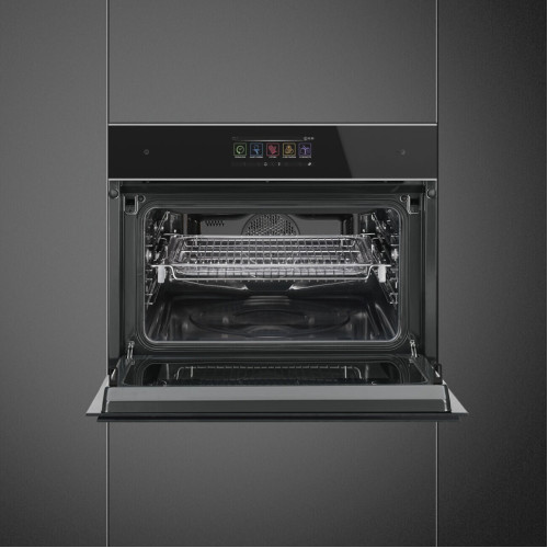 Smeg SF4606WMCNX — компактный многофункциональный духовой шкаф. Имеет 14 режимов приготовления, 5 из которых с использованием микроволн. Полезные функции шкафа: размораживание по времени и весу, поднятие теста, шаббат, ограничение мощности, поддержание тепла, ECO light, быстрый старт. Встраиваемый электрический духовой шкаф SMEG SF4606WMCNX предназначен для приготовления огромного ассортимента блюд, включая выпечку десертов и приготовление гриля. Классический дизайн в современном исполнении с оригинальной фурнитурой позволяет органично вписать оборудование в интерьер. Встраиваемая установка обеспечивает существенную экономию пространства, создавая комфортные условия для готовки даже на небольшой кухне. Многослойное стекло дверцы в сочетании с системой охлаждения существенно снижают температуру внешних поверхностей, гарантируя максимальную безопасность. Режимы приготовления: * Гриль * Гриль + конвекция * Гриль + нагрев сзади + конвекция * Гриль + интегрированные микроволны * Интегрированные микроволны * Микроволновая печь * Нагрев сзади + конвекция * Статический нагрев * Статический нагрев + конвекция * Нижний нагрев + конвекция * Турбо * Горячий воздух + интегрированные микроволны * Функция