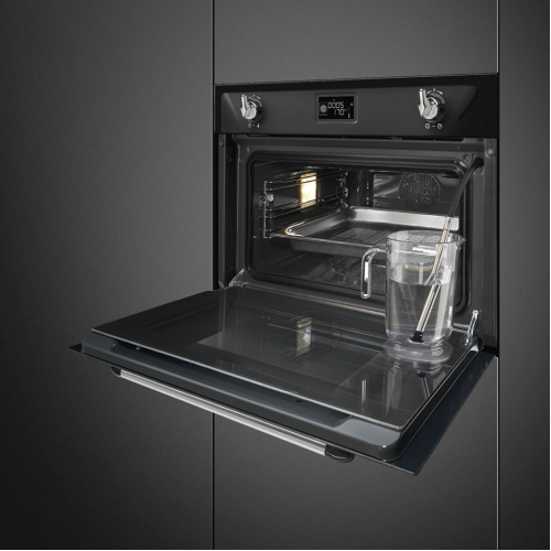 Описание ЭСТЕТИКА И УПРАВЛЕНИЕ Черный Фурнитура Victoria, эффект нержавеющей стали Большой LCD-дисплей Поворотные переключатели ФУНКЦИИ/ ОПЦИИ/ ТЕМПЕРАТУРА 12 функций приготовления (3 с использованием пара) Функции очистки: паровая очистка, программа декальцинирования Дополнительные функции: залив воды, слив воды, размораживание по времени, размораживание по весу, поднятие теста, шаббат, поддержание тепла, ECO light 20 автоматических рецептов приготовления Электронный программатор: таймер, отсрочка включения, автоматическое выключение Акустический сигнал окончания приготовления Режим Showroom Режим ограничения мощности Электронный контроль температуры (30-250ºС) Быстрый предварительный разогрев ВНУТРЕННЯЯ КАМЕРА Полезный объем 41 л Емкость для воды 1,2 л 3 уровня приготовления Металлические направляющие Эмаль Ever Clean Внутреннее освещение – 1 галогенная лампа Внутреннее стекло дверцы сплошное съемное БЕЗОПАСНОСТЬ Тангенциальная система охлаждения Блокировка управления 3 стекла дверцы, «холодная дверца» Автоматическое отключение при открытой дверце АКСЕССУАРЫ В КОМПЛЕКТЕ Противень глубокий (40 мм): 1 Противень глубокий из перфорированной стали: 1 Противень из перфорированной стали: 1 Решетка для противней: 1 Решетка с ограничителем: 2 Губка ТЕХНИЧЕСКИЕ ХАРАКТЕРИСТИКИ: Номинальная мощность: 3,1 кВт Мощность гриля: 2,0 кВт Напряжение: 220-240 В Сила тока: 14 А Частота тока: 50 Гц