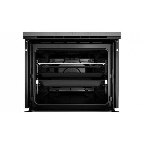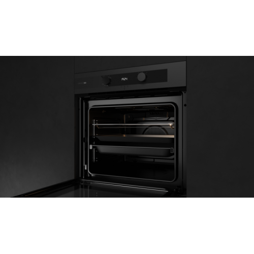 Teka HLB 85-G1 P MATT BLACK Мультифункциональный духовой шкаф с системой чистки DualClean (пиролиз+HydroClean® PRO) и режимом турбо Спроектировано в Италии компанией Giugiaro Italdesign Эксклюзивное чёрное матовое покрытие Декоративная медная вставка Экстра мощный гриль 340 °С Готовка неаполитанской пиццы на камне с технологией MAESTROPIZZA Температурный диапазон 50-250 °С 8 режимов приготовления + HydroClean® PRO+пиролиз (3 режима) Объём 70 л Фиксированные чёрные матовые регуляторы Стеклянная сенсорная панель управления +жидкокристаллический бело-красный дисплей Плавный доводчик двери SoftClose, легко снимаемая дверца Неоткидной макси-гриль Протектор для защиты от ожога грилем Механический быстрый разогрев Режимы: MAESTROPIZZA, разморозка, турборежим, PIZZA (нижний нагрев + турбо), ECO режим, верхний нагрев + нижний нагрев, макси-гриль, гриль Как готовить на режиме MAESTROPIZZA: установите решётку на телескопические направляющие, установите камень для пиццы на решётку, извлеките противни, закройте дверцу. Включите режим MAESTROPIZZA, предварительный разогрев до 340 °С займёт 35 минут. Раздастся сигнал, нажмите OK, откройте дверцу и поместите внутрь печи пиццу. Оставьте готовиться в течение времени согласно таблицы в инструкции Виды пиццы для готовки на режиме MAESTROPIZZA с использованием камня 3-4 мин.: свежеприготовленное домашнее тесто, готовое тесто, раскатанное тонкое тесто, раскатанное стандартное тесто Виды пиццы для готовки на режиме PIZZA без использования камня: полуфабрикат (8 мин., 220 °С), замороженная пицца (10 мин., 210 °С) Пиролитическое покрытие Slippery Тангенциальная система охлаждения (вентилятор с 2-мя скоростями) Рельефное дно камеры с углублением для воды для чистки Hydroclean Внутренняя поверхность дверцы из закалённого стекла Четырёхслойная термоизолированная дверца, 3 съёмных внутренних стекла Автоматическое отключение при открытии дверцы Блокировка для безопасности детей (таймер и дверь) 1 камень для пиццы из кордиерита (380*330*15 мм, 3,46 кг). Камень поменяет цвет после первого использования. Допустима только ручная мойка камня неагрессивными средствами. Телескопические направляющие Easy Slide на 1 уровне 5-уровневые хромированные направляющие 1 глубокий противень (50 мм) с покрытием Slippery, 1 противень для выпечки с покрытием Slippery, 1 усиленная решётка Класс энергопотребления А+ Кабель 150 см с вилкой Подсветка галогеновой лампой 25 Вт Максимальная номинальная мощность 3552 Вт Габариты Внутренняя высота (мм): 364 Внутренняя ширина (мм): 475 Внутренняя глубина (мм): 402 Полезная ёмкость (л): 70 Полная ёмкость (л): 71 Бренд: Teka Модель: HLB 85-G1 P MATT BLACK