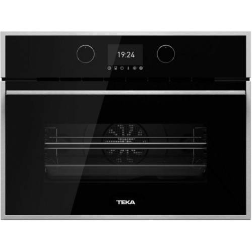 Описание ОБЩИЕ ХАРАКТЕРИСТИКИ Тип духовки \t независимая Способ подключения \t электрический Ширина (см) \t 59.5 Высота (см) \t 45.5 Глубина (см) \t 55.9 Габариты, см (ВхШхГ) \t 45.5х59.5х55.9 Размеры ниши для встраивания, см (ВхШхГ) \t 45х60х49 Объем (л) \t 40 Вид духовки \t компактная ДИЗАЙН Коллекция \t Maestro Цвет \t черный Фурнитура \t нержавеющая сталь Материал панели управления \t стекло Нержавеющая сталь с защитным покрытием от следов пальцев \t Да ФУНКЦИИ, ТЕХНОЛОГИИ Тип гриля \t электрический Быстрый разогрев \t Да Функция ECO \t Да УПРАВЛЕНИЕ Программатор \t электронный Переключатели \t сенсорные поворотные Дисплей \t TFT Таймер \t Да РЕЖИМЫ НАГРЕВА Количество режимов нагрева \t 16 Верхний / нижний нагрев \t Да Верхний / нижний нагрев + конвекция (вентилятор) \t Да Макси-гриль \t Да Гриль \t Да Гриль + конвекция \t Да Нижний нагрев \t Да Гриль + нижний нагрев + конвекция (вентилятор) \t Да Турбо \t Да ДОПОЛНИТЕЛЬНЫЕ РЕЖИМЫ Медленное приготовление \t Да Функция разморозки \t Да Режим для пиццы \t Да Автоматические программы \t 20 рецептов Функция микроволновки \t Есть ОЧИСТКА Очистка \t HydroClean PRO Внутреннее покрытие духовки \t инновационное Slippery КОМФОРТ Дверца духовки \t откидная Доводчик двери \t Да Освещение \t галогенное Количество ламп \t 1 Тип направляющих \t хромированные Кол-во уровней приготовления \t 4 Температурный диапазон, °С \t 30-270 Съемное стекло дверцы \t Да БЕЗОПАСНОСТЬ Защита от детей \t Да Защита от ожога грилем \t Да Количество стекол дверцы духовки \t 3 Вентиляция \t тангенциальная ТЕХНИЧЕСКИЕ ХАРАКТЕРИСТИКИ Класс энергопотребления \t A+ Макс. номинальная мощность, кВт \t 3.4 Мощность гриля (кВт) \t 1.4 Мощность макси-гриля (кВт) \t 2.5 Напряжение (В) \t 220-240 Частота тока (Гц) \t 50-60 Освещение (Вт) \t 25 Кабель (м) \t 1.5 Вилка \t Да ДОПОЛНИТЕЛЬНЫЕ ПАРАМЕТРЫ Принадлежности \t 1 стеклянный противень 1 усиленная решетка