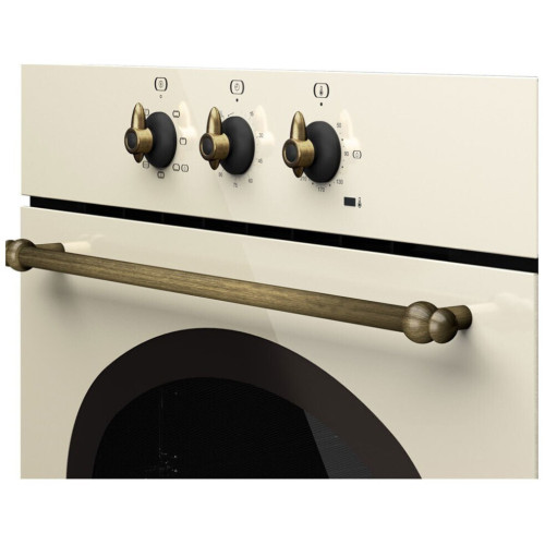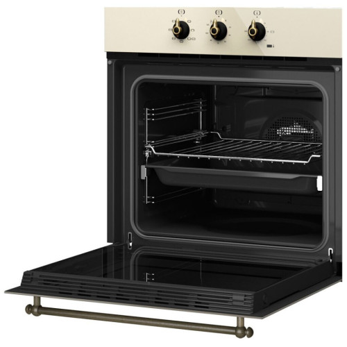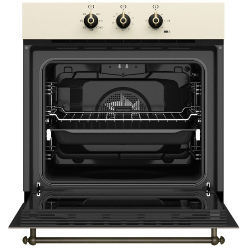 Управление и функции: Таймер без отключения Механический быстрый разогрев Температурный диапазон 50-250 °С Безопасность: Динамическая система охлаждения (вентилятор с 1 скоростью) Двухслойная термоизолированная дверца, 1 съёмное внутреннее стекло Система против переворачивания противня Термостат безопасности Оснащение: Телескопические направляющие Easy Slide на 1 уровне 5-уровневые хромированные направляющие 1 глубокий противень (50 мм) с покрытием Slippery 1 стандартная решётка Дополнительная информация: Коллекция Кантри Фурнитура: Состаренная бронза Матовое текстурированное покрытие Стандартный доводчик двери Стандартный гриль мощностью 1400 Вт Протектор для защиты от ожога грилем Инновационное покрытие Slippery Рельефное дно камеры с углублением для воды для чистки Hydroclean Внутренняя поверхность дверцы из закалённого стекла Класс энергопотребления А Кабель 150 см Подсветка лампой накаливания 25 Вт Охлаждающий вентилятор 18 Вт Максимальная номинальная мощность 2615 Вт