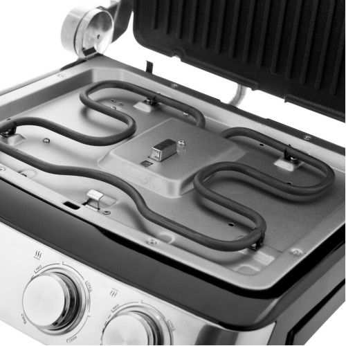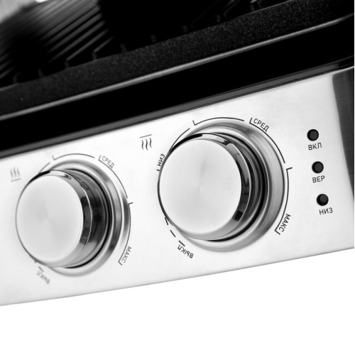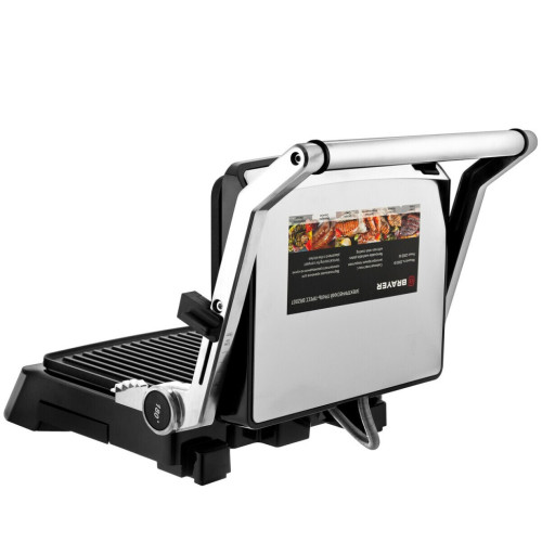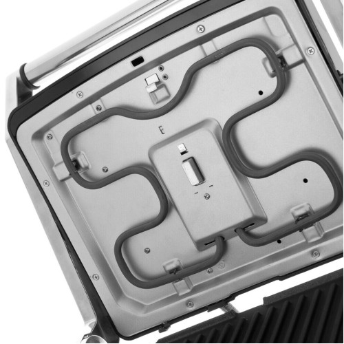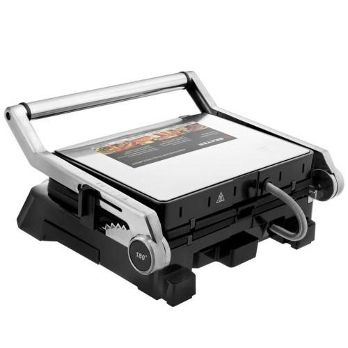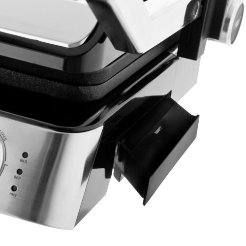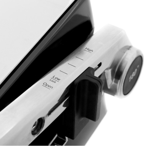 * Съёмные моющиеся пластины с антипригарным покрытием * Размер пластин: 29х23 см * Максимальная температура 240° * Регулировка расстояния между пластинами по высоте продукта * Корпус из высокопрочного пластика, декорирован нержавеющей сталью * Вертикальное хранение для компактного размещения на кухне * Открытие крышки на 180° * Поддон для сбора жира * Защита от перегрева