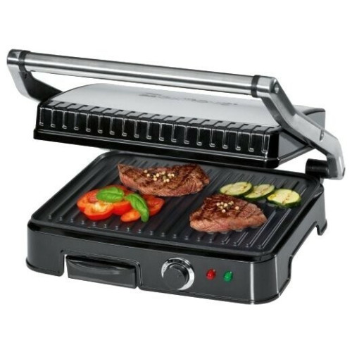 Для любителей порадовать сочными блюдами лучшим приобретением станет гриль Clatronic KG 3487. Он предназначен для двухстороннего обжаривания мяса и овощей, ведь нагревательный элемент прибора площадью 693 см² располагается с двух сторон. Преимущество гриля в антипригарном покрытии, что позволяет избежать пригорания продуктов. Он оборудован отсеком для хранения шнура. Электрический контактный гриль Clatronic KG 3487 в стальном корпусе имеет механическое управление, в котором разберется любой начинающий пользователь. Регулировать температуру придется вручную, ведь в приборе не предусмотрено автоматического управления. Для обеспечения безопасности при приготовлении блюд гриль оборудован ручкой, защищенной от нагревания, и имеет защиту от перегрева. Индикаторы работы и нагрева помогут проследить за состоянием прибора. Особенность гриля в наличии лотка для сока и жира, что позволяет приготовить поистине сочные блюда.