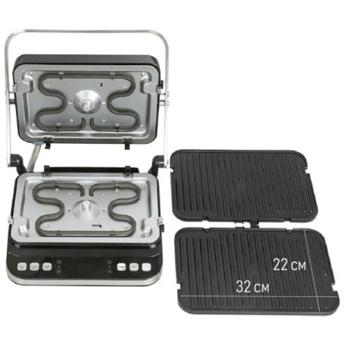 | Особенности | автоматическое отключение, защита от скачков напряжения, индикатор включения, индикатор времени до конца программы, индикатор нагрева, прорезиненные ножки, раскрытие на 180 градусов, регулировка нагрева, регулировка наклона, ручка с защитой от нагревания, |