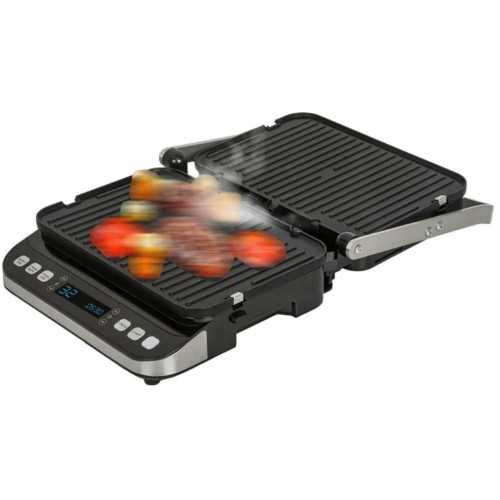 Современный электрический гриль JVC JK-GR320 со съемными антипригарными панелями, лотком для сбора жира, сенсорным управлением, раздельным режимом нагрева панелей и тремя рабочими положениями (пресс, 100°, 180°) - идеальное решение для приготовления мясных, рыбных или овощных блюд и сэндвичей в домашних условиях. Мощность: 2000 Вт. ЖК-дисплей. Сенсорное управление. Безопасная не нагревающаяся ручка. Антипригарное покрытие. Съемные панели 31х22 см 3 рабочих положения: пресс,100°, 180° Раздельный режим нагрева панелей: верхняя и нижняя, нижняя. Регулировка температуры и времени Автоматические программы: говядина, рыба, курица, разморозка. Пресс В открытом виде (100 градусов). В открытом виде (180 градусов). Стильный дизайн. Съемный поддон для сбора жира. Съемные панели с антипригарным покрытием для равномерной прожарки. Размер панелей: 310х220 мм. Противоскользящие ножки. Панели можно мыть в посудомоечной машине. Съемные антипригарные панели. Съемный поддон для сбора жира. Электрический гриль со съемными антипригарными панелями JVC JK-GR320 позволит использовать его не только как обычный гриль, но и как пресс для сэндвичей. За счет рифленых поверхностей жир во время приготовления стекает в специальный лоток для сбора жира, поэтому приготовление в электрогриле позволяет получить диетическую и полезную для здоровья пищу.