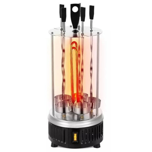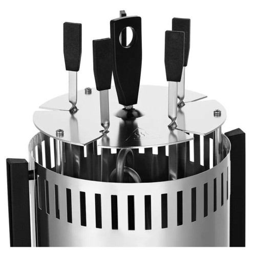 Электрошашлычница Kitfort KT-1406 позволит вам приготовить сочный шашлык в любое время года, достаточно лишь подключить устройство к электросети. Побалуйте себя и своих родных вкуснейшим шашлыком из мяса, рыбы и овощей приготовленным всего за 15 минут. Инфракрасный нагревательный элемент обеспечивает такой же нагрев, какой дают угли в обычном мангале, а автоматическое вращение шампуров позволяет мясу оставаться сочным внутри и равномерно обжаренным снаружи. В комплекте с электрошашлычницей идут 5 шампуров. Помимо шашлыка из мяса, рыбы или овощей, приготовьте также шаверму, сардельки, картошку, гренки или даже курицу гриль! За 1 раз вы можете приготовить до 1 кг шашлыка. Электрошашлычница проста в использовании: устройство работает от обычной электрической розетки, не нужно ставить мангал и разжигать угли. Включение/выключение устройства осуществляется единственной кнопкой. Под каждым шампуром расположена специальная тарелочка для сбора сока и жира. После приготовления шашлыка эти тарелочки можно легко снять и вымыть с моющим средством. Электрошашлычница, кожух и шампуры оснащены ручками из не нагревающегося материала, поэтому их можно брать руками, не боясь обжечься. Съёмный металлический кожух выполняет защитную функцию, а также препятствует рассеиванию жара. Устройство легко разбирается, что позволяет тщательно промывать детали. Данная модель КТ-1406 не займёт много места и легко впишется в интерьер благодаря минималистичному дизайну и вертикальной конструкции. Длина шнура – 1,2 м позволяет использовать устройство на большом расстоянии от розетки.