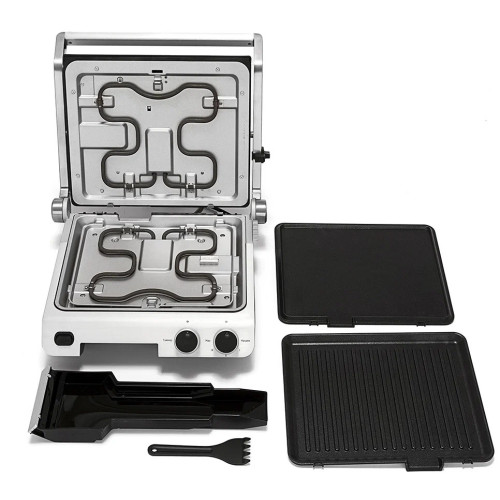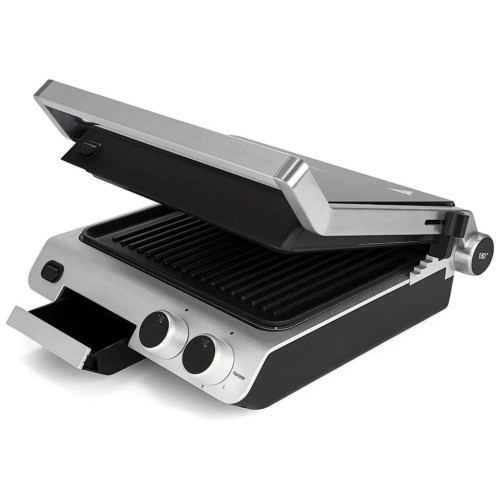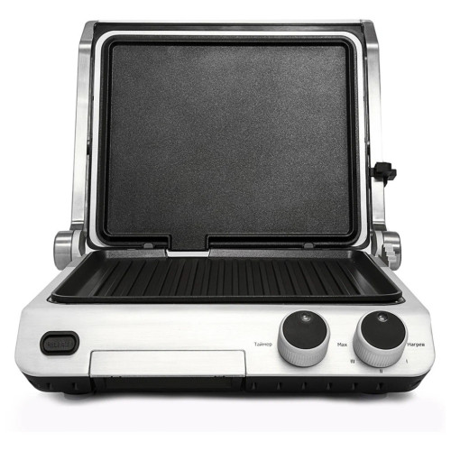 Контактный электрический гриль Kitfort КТ-1603 позволяет приготовлять стейки, овощи, рыбу, бутерброды, гренки и многое другое. Ребристая поверхность рабочей пластины и высокая температура приготовления способствуют удалению излишков жира из продуктов. Конструкция «3 в 1» позволяет использовать гриль в трёх режимах. В двухстороннем режиме гриль закрывается крышкой, и продукты готовятся одновременно с двух сторон. В режиме с приподнятой крышкой верхняя крышка нависает над готовящимися продуктами, но не касается их. Это бывает необходимо в случае, если требуется двусторонний нагрев, но куски продуктов имеют неодинаковую толщину, либо если требуется исключить давление крышки на них. Например, в этом режиме можно приготовить бутерброд или разогреть пиццу. В одностороннем режиме крышка гриля откидывается на 180°, и гриль превращается в большую жаровню. Для приготовления можно использовать обе поверхности. Гриль оснащён термостатом с плавной регулировкой, позволяющим выставить температуру вплоть до 230°C. При помощи таймера вы можете задать время приготовления вплоть до 30 минут. Нагревательные панели изготовлены из алюминия с нанесённым антипригарным покрытием. Они съёмные и могут быть легко очищены.
