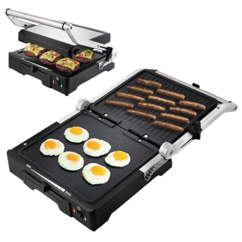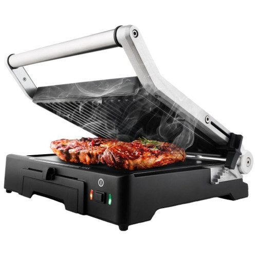 Особенности антипригарное покрытие, контактный гриль, поддон для сбора жира, регулировка высоты верхней панели