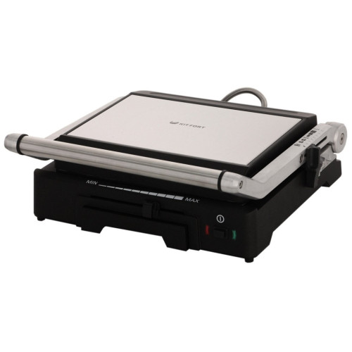 " Контактный электрический гриль Kitfort KT-1633 позволяет приготовлять стейки, овощи, рыбу, бутерброды, гренки и многое другое. Конструкция «3 в 1» позволяет использовать гриль в трех режимах. В двухстороннем режиме гриль закрывается крышкой, и продукты готовятся одновременно с двух сторон. В режиме с приподнятой крышкой верхняя крышка нависает над готовящимися продуктами, но не касается их. Это бывает необходимо в случае, если требуется двусторонний нагрев, но куски продуктов имеют неодинаковую толщину, либо если требуется исключить давление крышки на них. Например, в этом режиме можно приготовить бутерброд или разогреть пиццу. В одностороннем режиме крышка гриля откидывается на 180°. Гриль превращается в большую жаровню, и для приготовления можно использовать обе поверхности. ".